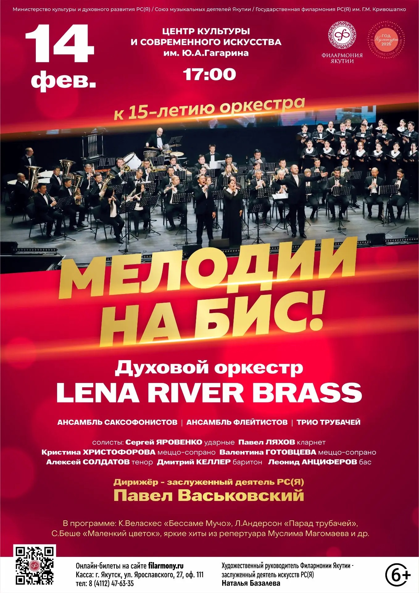Духовой оркестр Lena River Brass Филармонии Якутии под управлением заслуженного деятеля искусств РС(Я) Павла Васьковского представит концерт «Мелодии на бис».